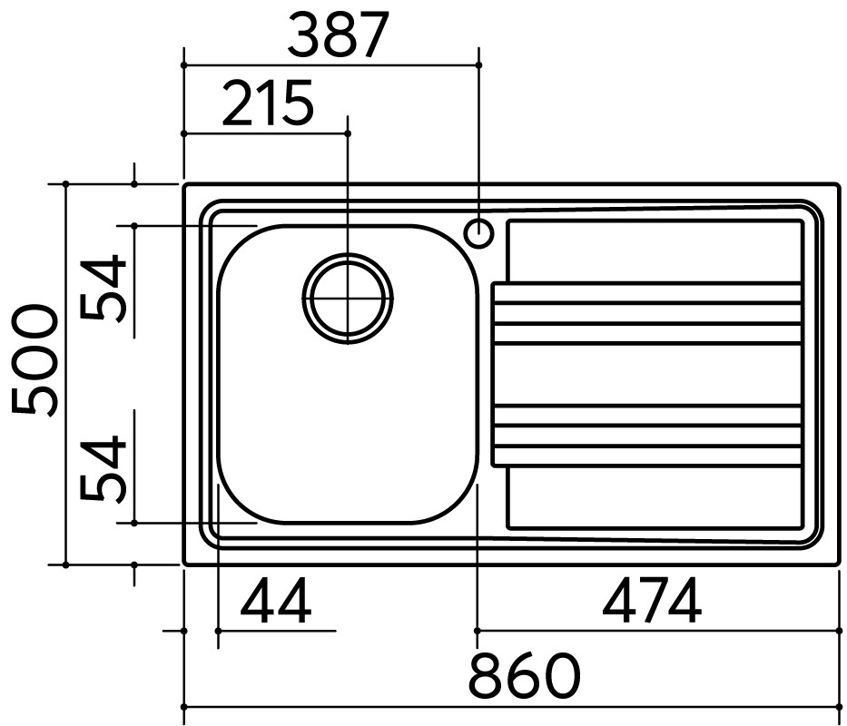 Life 3”½ incasso inox 86x50 1 vasca + gocciolatoio